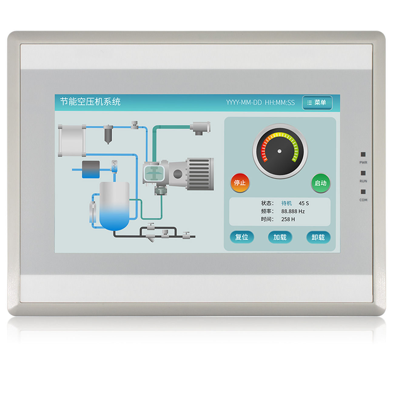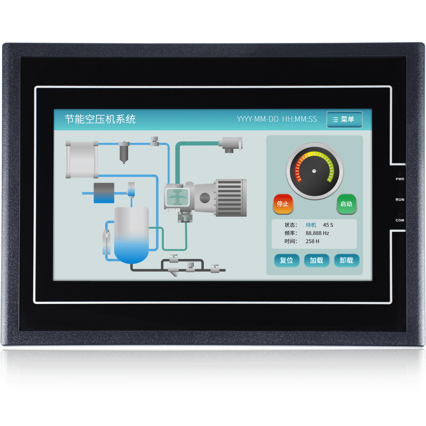 金璽HMI應(yīng)用在超聲波控制上,安裝在控制機(jī)箱上對(duì)超聲波進(jìn)行數(shù)據(jù)設(shè)定和監(jiān)控。
